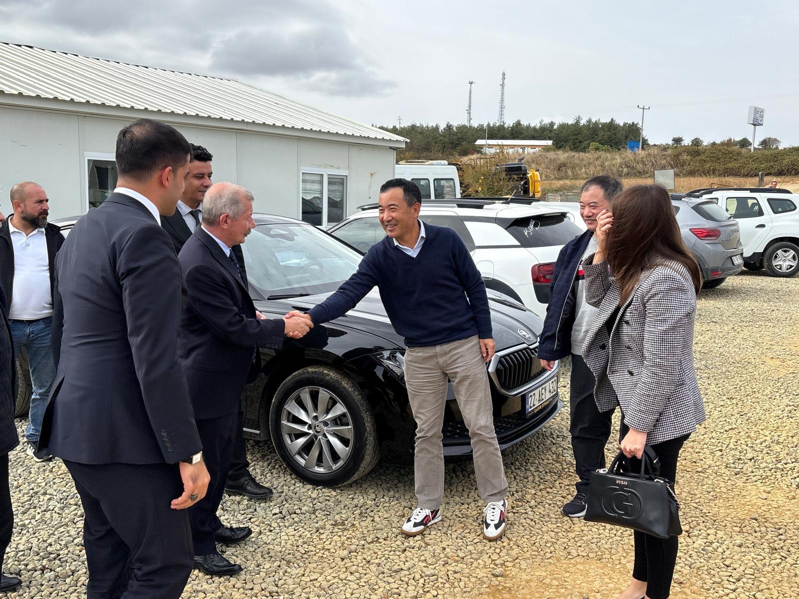 Xiwei Cheng ve CFO Seher Yıldırım Keşan’da yatırım yapacakları fabrika alanını Keşan OSB Yönetim Kurulu Üyeleri Ticaret Odası Başkanı İsmail Şapçı, Kaymakamımız Azi Mercan, İpsala Kaymakamı Ömer Sevgili, Keşan Belediye Başkanı Mehmet Özcan, Ticaret Borsası Başkanı Necmi Kaymaz ve OSB Bölge Müdür Rıza Taşlıtepe ile beraber ziyarette bulundular. Akabinde OSB İdari Binasında Toplantı gerçekleştirildiler..